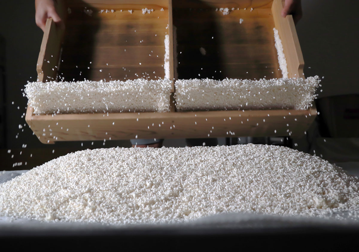 Katsuyama’s sake presents unique characters of noble bouquet, natural sweetness and elegant umami. The fruity aroma of Katsuyama can be described as gorgeous, rich and graceful. KATSUYAMA “Lei”, for instance, presents a juicy aroma of Japanese mask melon and strawberries. KATSUYAMA “Gen” is a dessert sake with ripe pear and honey notes and pleasant sweetness. It pairs well to cheese and rich food such as liver pâté. Katsuyama produces only a small amount of sake in order to ensure the highest quality of their sake. While it is common for breweries to produce seven tanks a week, Katsuyama brews only one tank a week. By focusing on just one tank, they make sure to take best care of each brewing process and to derive the best possible taste from the rice. The brewery building is modern and equipped with the latest facility, for example KATSUYAMA “Diamond”is pressed with a very sophisticated centrifuge press, which extracts the liquid from the fermented mash by centrifuging force. In this way, they can bottle drops of the finest and most delicate taste.