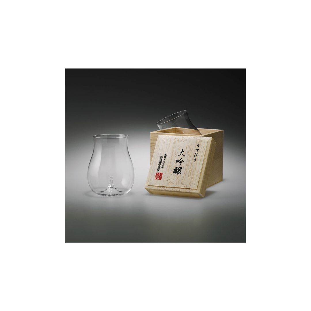 The extremely thin mouth-blown USUHARI glasses are carefully crafted by master craftsmen. The glass series USUHARI is created with the same technique as mouth-blown light bulbs. There are only a few manufactories in Tokyo that continue this tradition. USUHARI glasses are used in the Japanese top gastronomy for beer, sake and cold green tea. Packed in a nice wooden box. Not dishwasher safe.