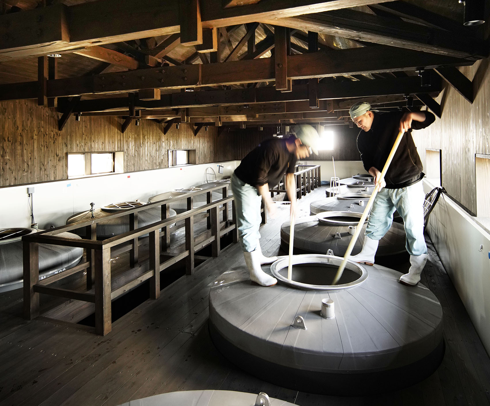 Frisch gepresster Sake ist oft rau. Deshalb reift er meist 6 bis 12 Monate im Tank. Die Reifung macht ihn runder und harmonischer.